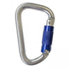 Moschettone in alluminio, color azzurro, chiusura automatica tripla azione, apertura 20 mm. Peso 79 g. Resistenza 23 kN.