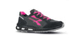 Calzatura di sicurezza bassa S1PS in pelle bovina scamosciata e tessuto poliestere. Supporto ergonomico del tallone in TPU. Puntale in acciaio 200J. Inserto antiperforazione K-SOLE. Tecnologia D-Light. Fodera in Air Mesh. Plantare anatomico microforato, antistatico estraibile in PU espanso riciclato a celle aperte, traspirante con carboni attivi. ESD.