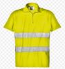 Maglia polo manica corta, dotata di collo con chiusura a zip. Doppia banda rifrangente su torace.